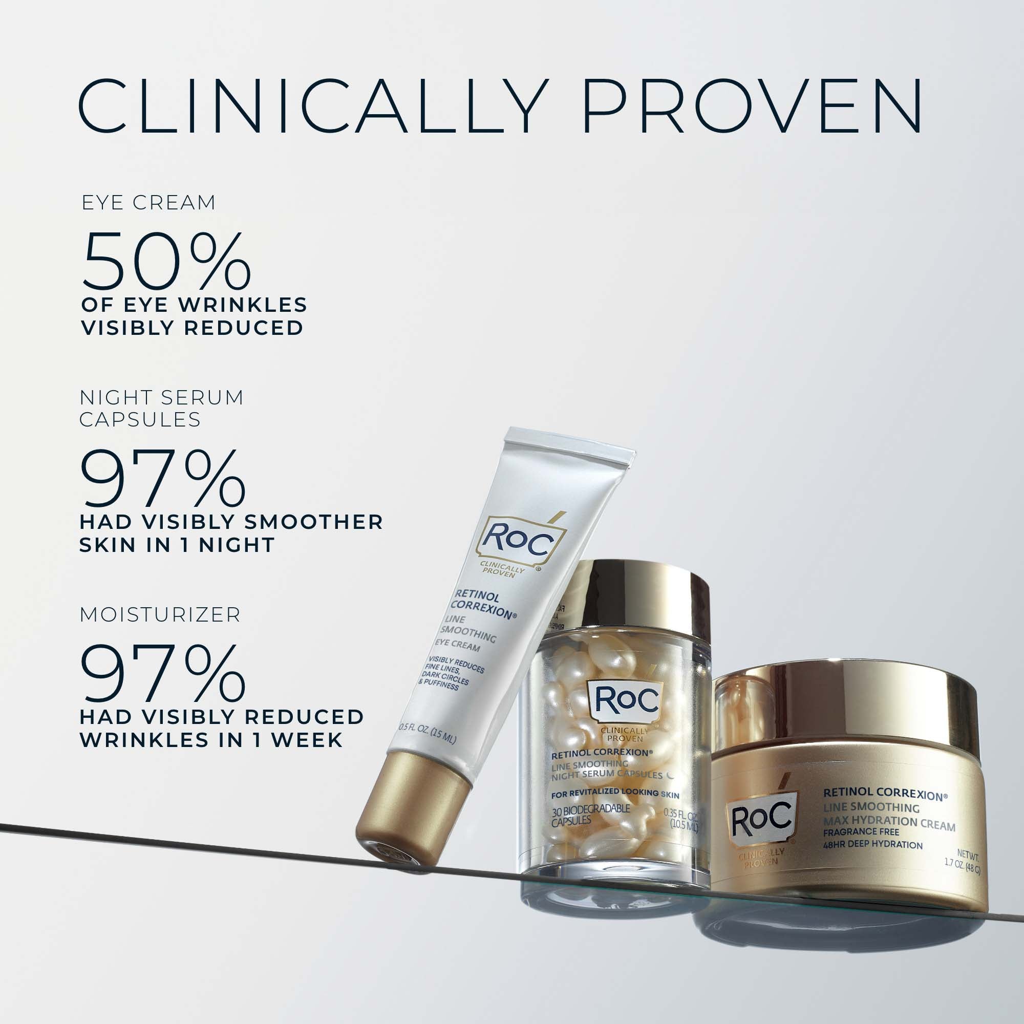 Three of our most innovative, clinically proven treatments powered by Clinical Retinol to target 3 major eye area concerns and the appearance of facial lines and wrinkles – with dramatic results beginning in just 1 night.