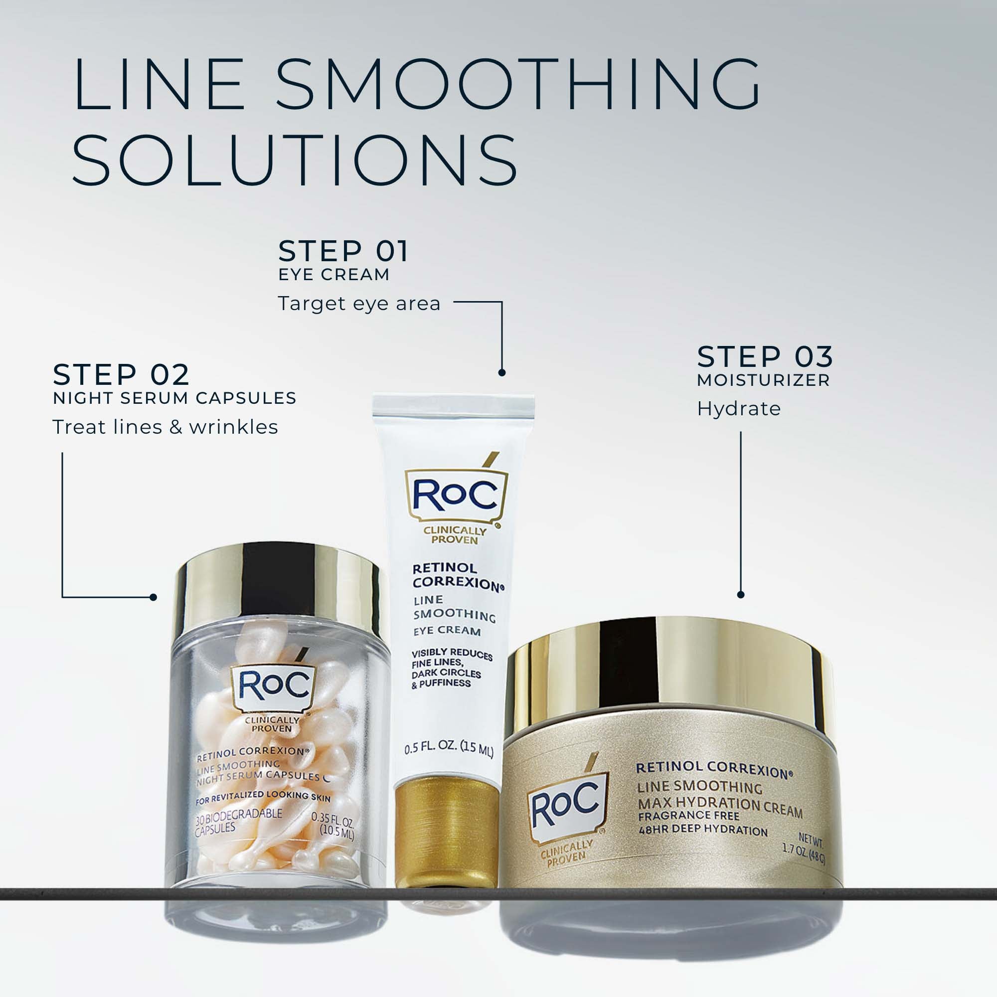 Three of our most innovative, clinically proven treatments powered by Clinical Retinol to target 3 major eye area concerns and the appearance of facial lines and wrinkles – with dramatic results beginning in just 1 night.